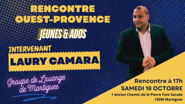 Rencontre Ouest-Provence avec le pasteur Laury Camara, animée par le groupe de jeunes de Martigues. Ouverte aux jeunes et ados.