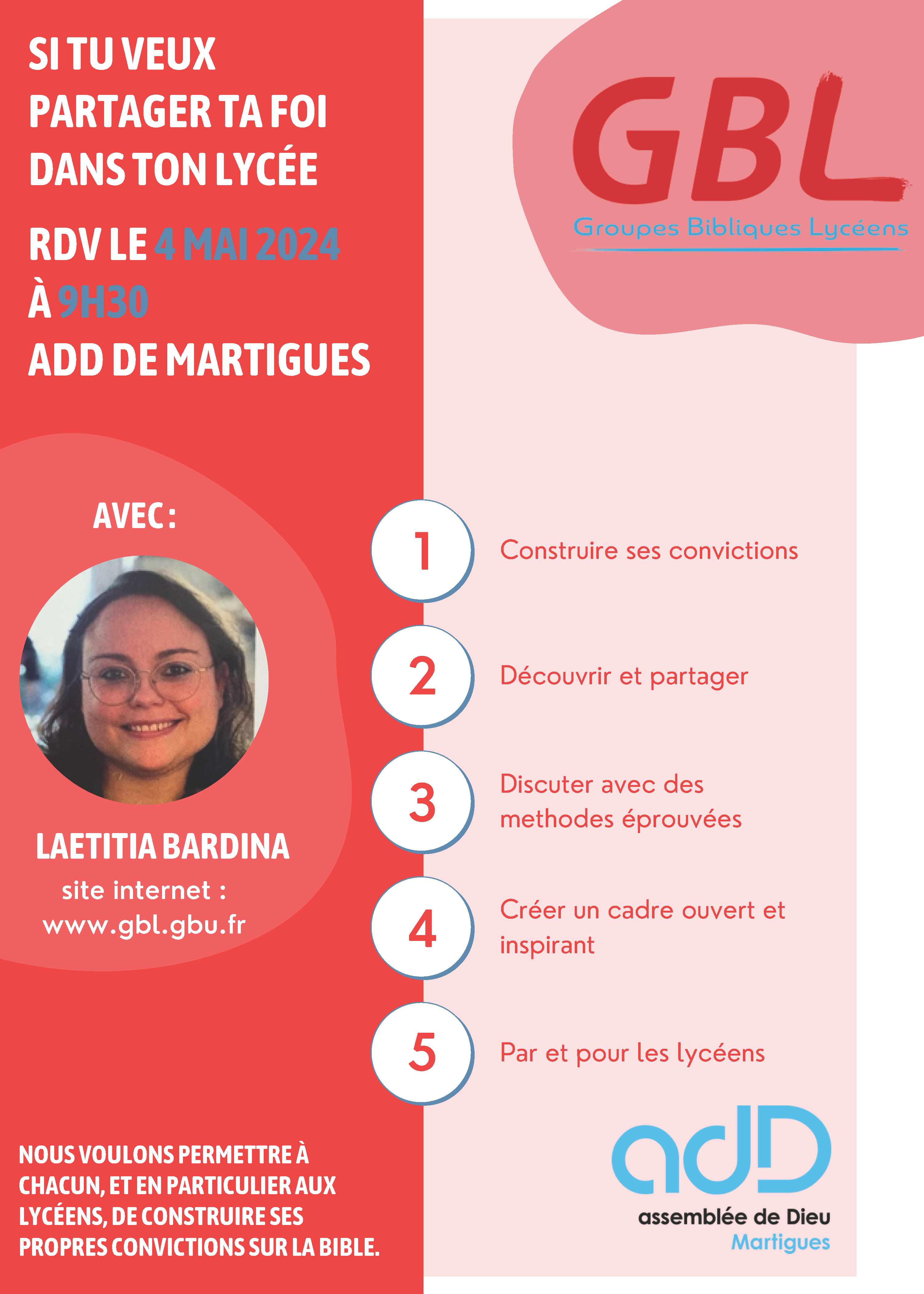 Si tu as à cœur de partager ta foi au sein de ton lycée, cette présentation et formation aux Groupes Bibliques Lycéens est faite pour toi.