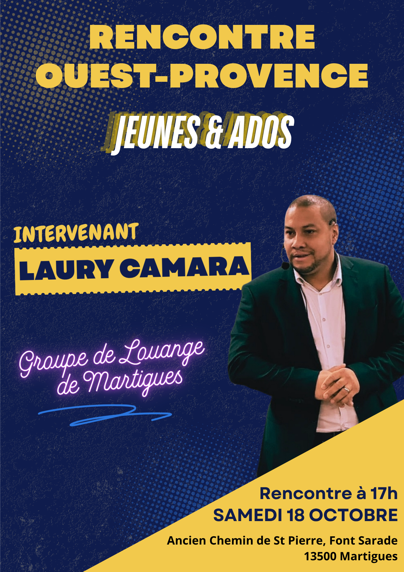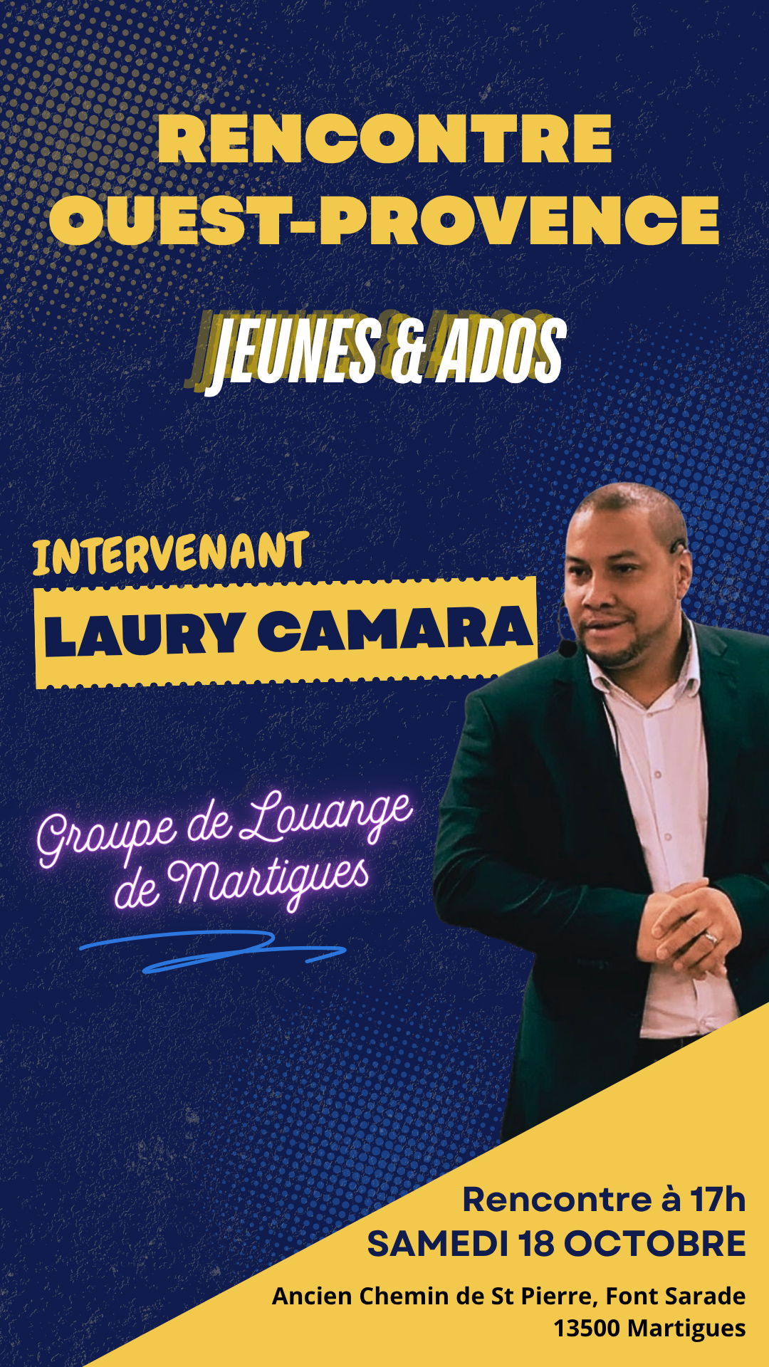 Rencontre Ouest-Provence avec le pasteur Laury Camara, animée par le groupe de jeunes de Martigues. Ouverte aux jeunes et ados.